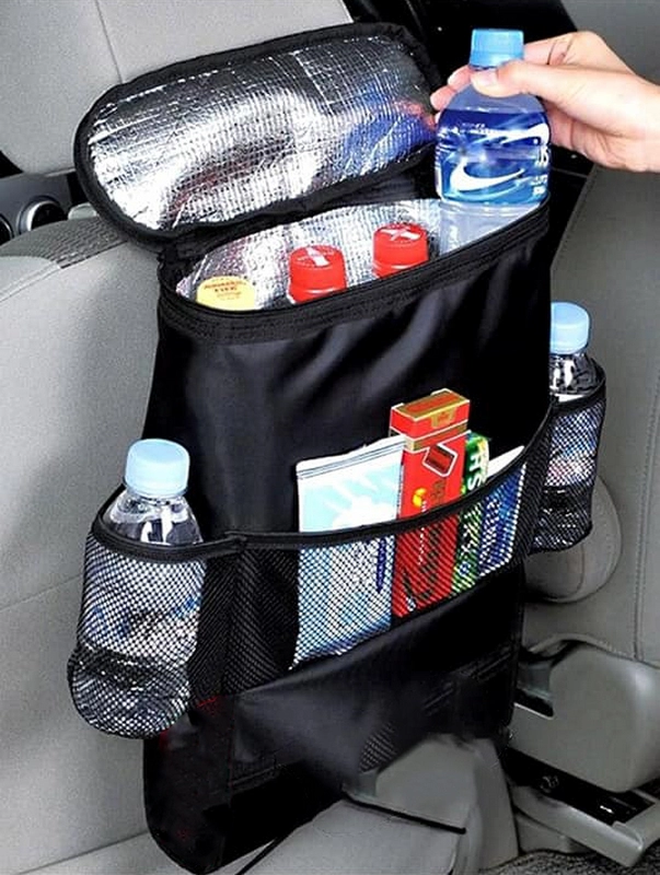 حافظة حرارة لظهر كرسي السيارة, منظم للعربية عملي 2 في 1 لأنه غير التنظيم فيه شنطة مبطنة لحفظ الحرارة، ضروري ومفيد في الرحلات والسفر والمشاوير بالعربية لمسافات طويلة