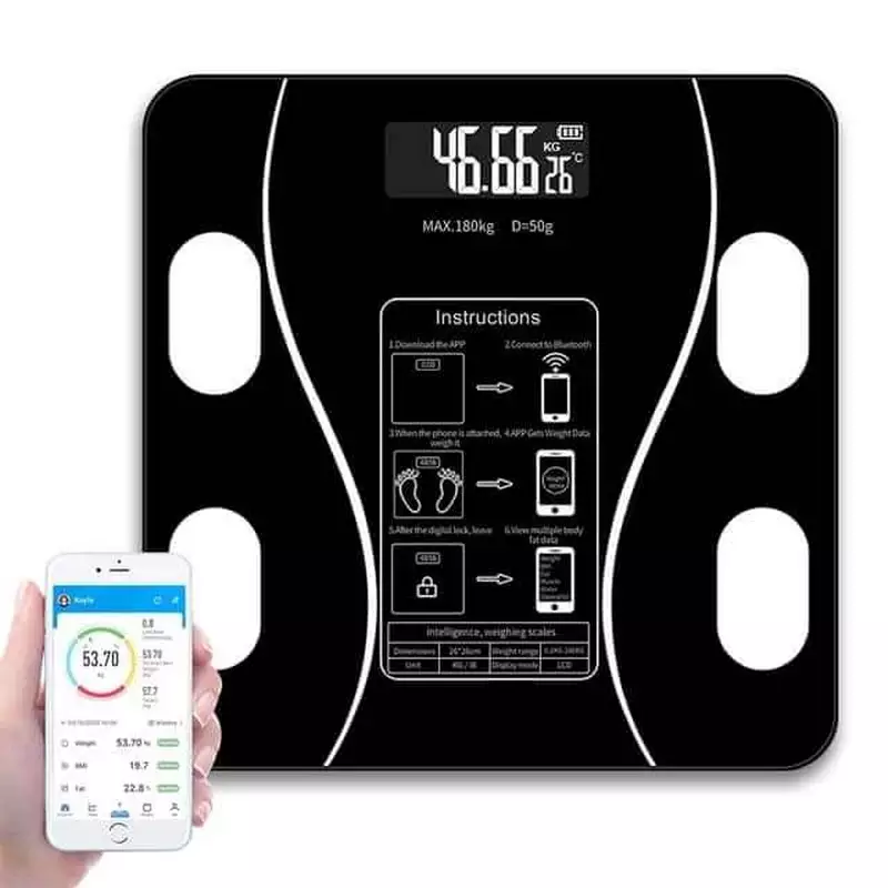 4️⃣ قم بتشغيل البلوتوث وربط الميزان بهاتفك لتتبع قياساتك بسهولة.