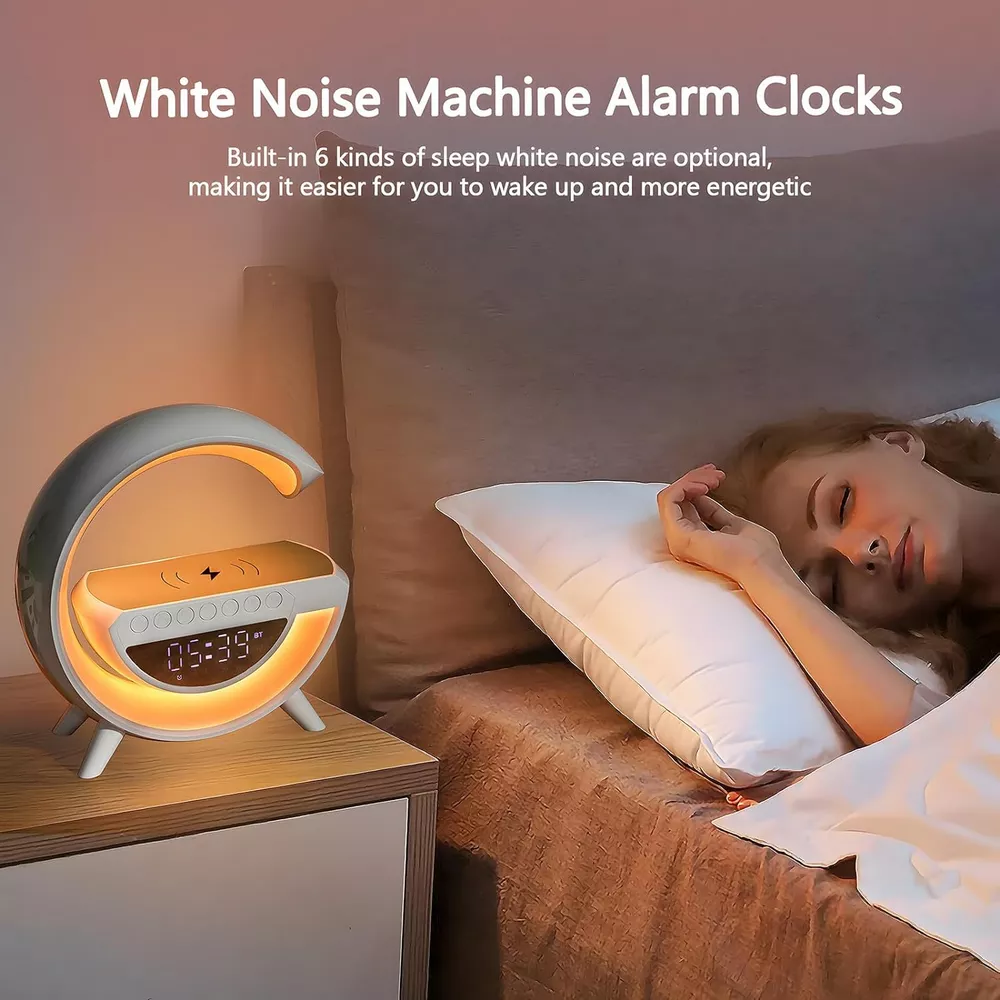 احصل على الأباجورة العبقرية 5 في 1 التي تجمع بين الشحن اللاسلكي، الإضاءة الملونة، وجودة الصوت العالية. مثالية لتزيين غرفتك والاستمتاع بمزايا متعددة في جهاز واحد. اطلب الآن!
